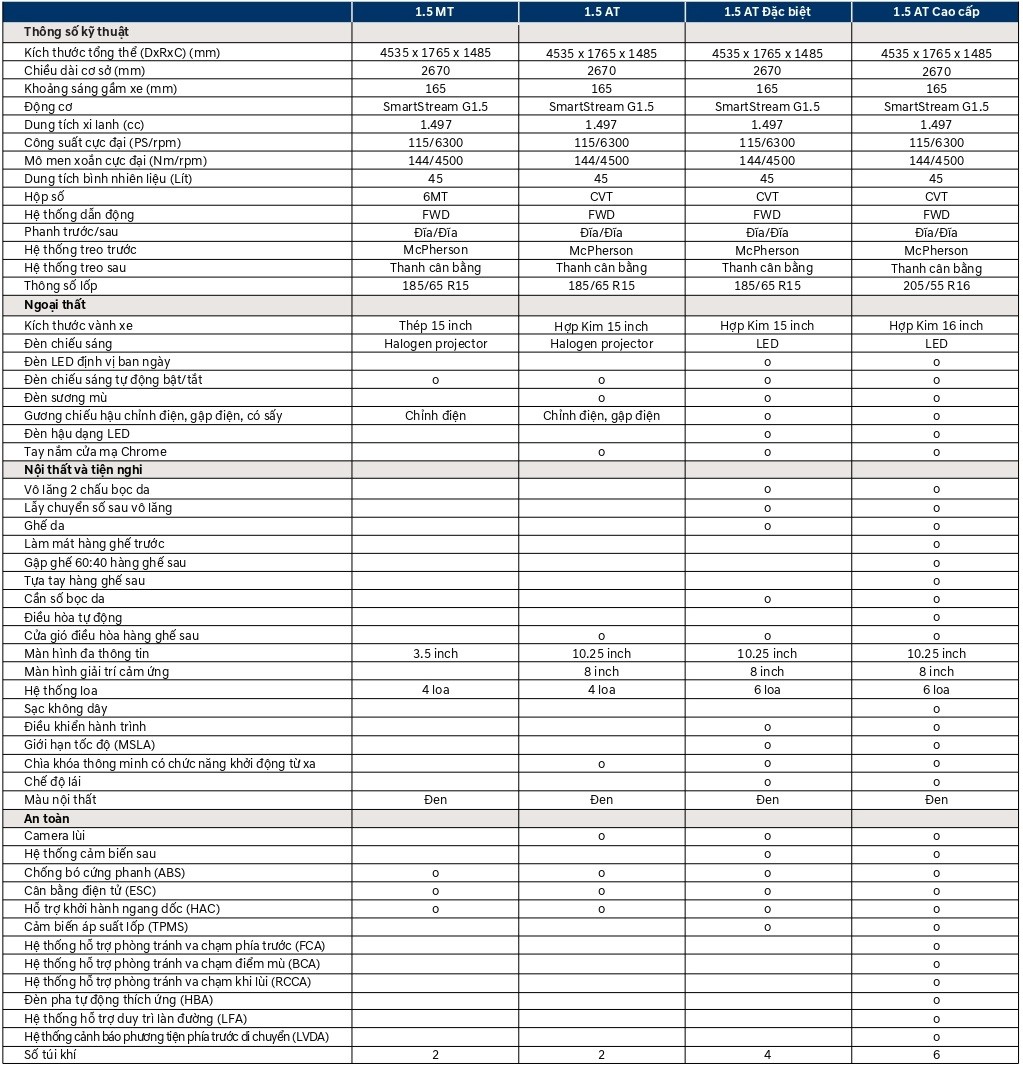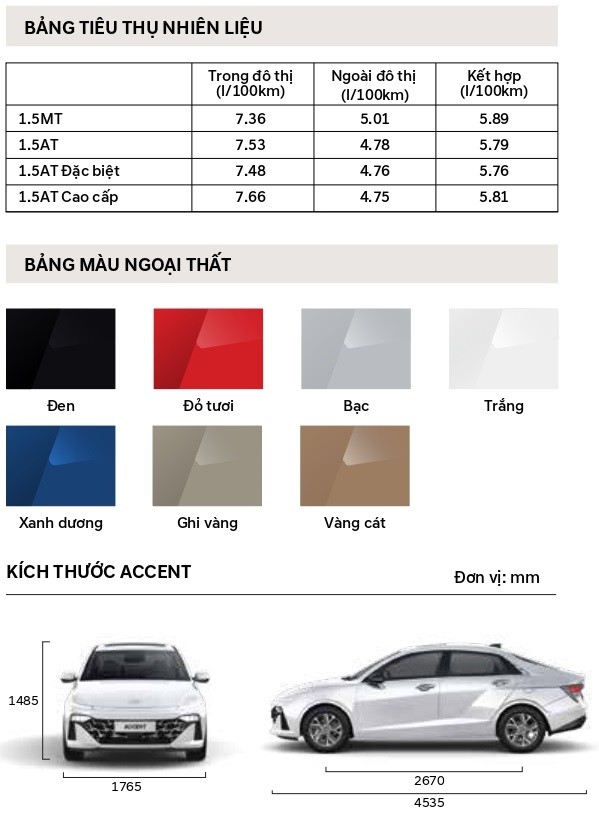 Accent 1.5 AT Đặc biệt: 529.000.000 ₫ đ