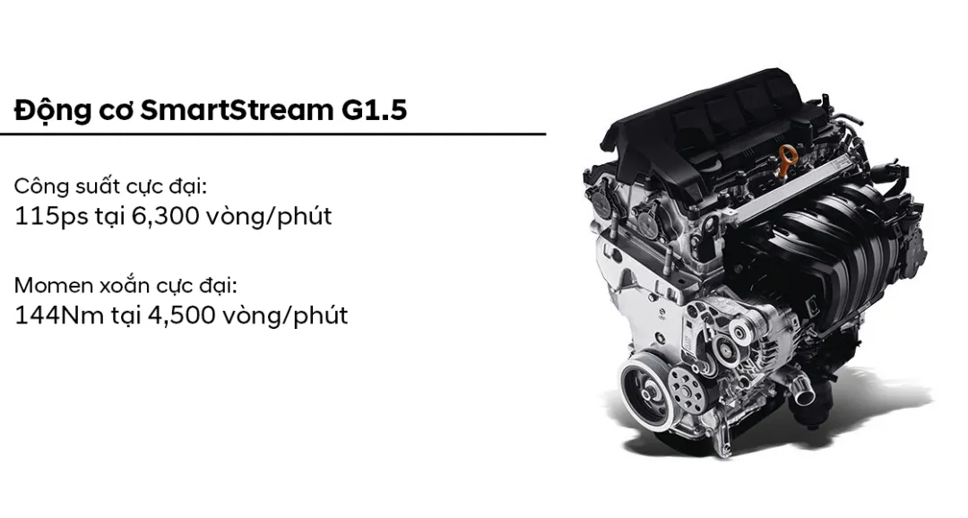 Hyundai Creta vẫn trang bị động cơ 1.5 hút khí tự nhiên cho tất cả các phiên bản. Động cơ này mạnh 115 mã lực tại vòng tua máy 6.300 vòng/phút, mô-men xoắn cực đại 144 Nm tại 4.500 vòng/phút. Xe dẫn động cầu trước thông qua iVT, một loại hộp số CVT do Hyundai phát triển.