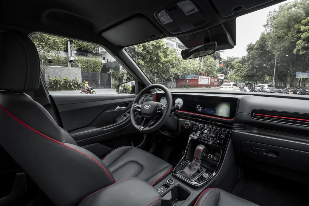 Nội thất New Creta là sự kết hợp hoàn hảo giữa không gian rộng rãi dựa trên trục cơ sở có kích thước 2.610mm, thiết kế tinh tế mang cảm hứng nghệ thuật và công nghệ hiện đại. Điểm nhấn là cụm màn hình kép tích hợp, bao gồm màn hình trung tâm và bảng đồng hồ kỹ thuật số đều có kích thước 10.25 inch, mang đến giao diện hiện đại với đồ họa cải tiến, hỗ trợ hiển thị đa dạng thông tin. Phiên bản N Line được trang bị viền sơn đỏ tạo điểm nhấn tạo cảm giác trẻ trung và thể thao hơn.