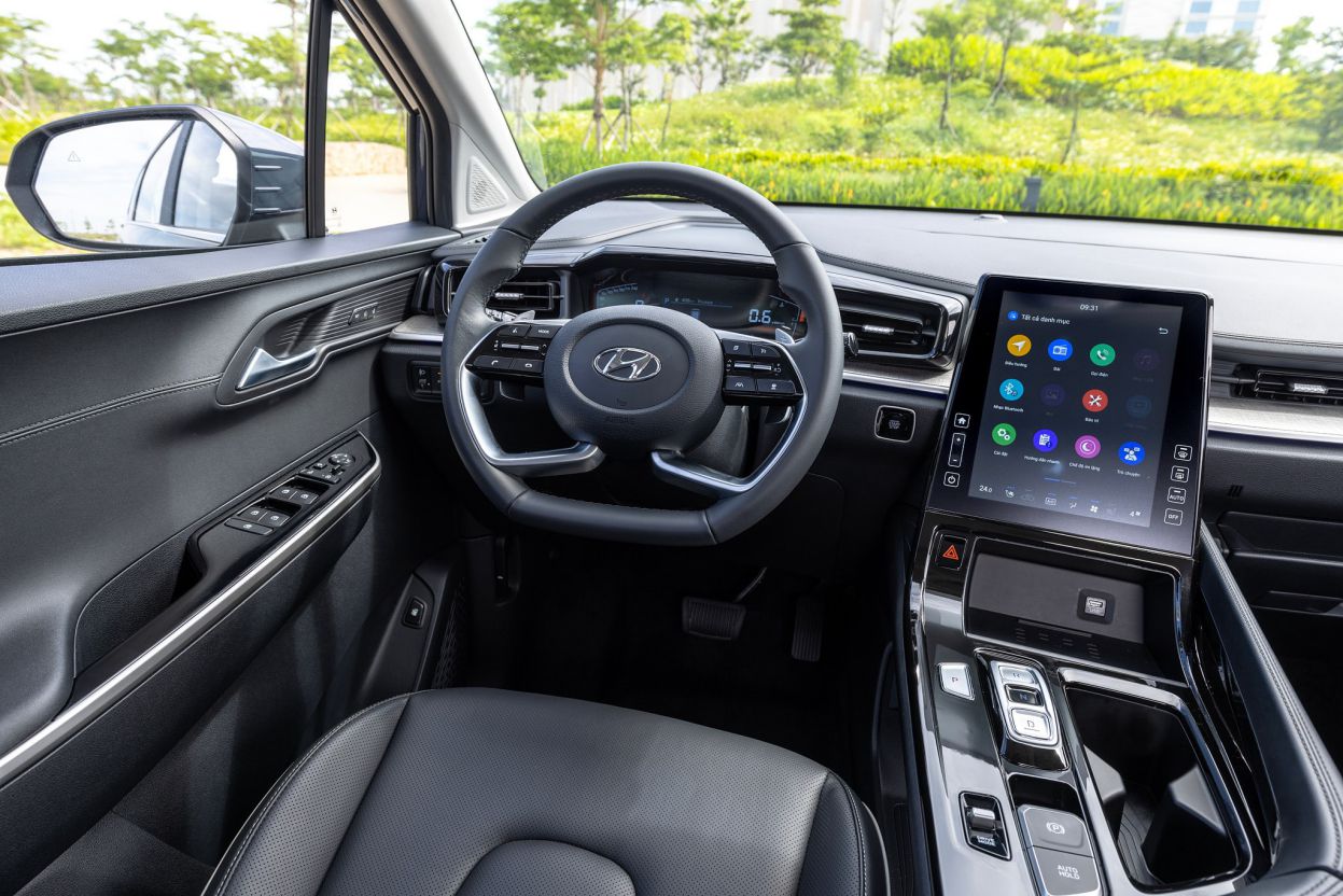 Thiết kế khoang cabin của Custin khác biệt các mẫu xe Hyundai khác khi sử dụng màn hình dọc 10,4 inch, tích hợp hệ thống dẫn đường độc quyền do Hyundai Thành Công phát triển dành riêng cho thị trường Việt Nam, có hỗ trợ Apple CarPlay/Android Auto.