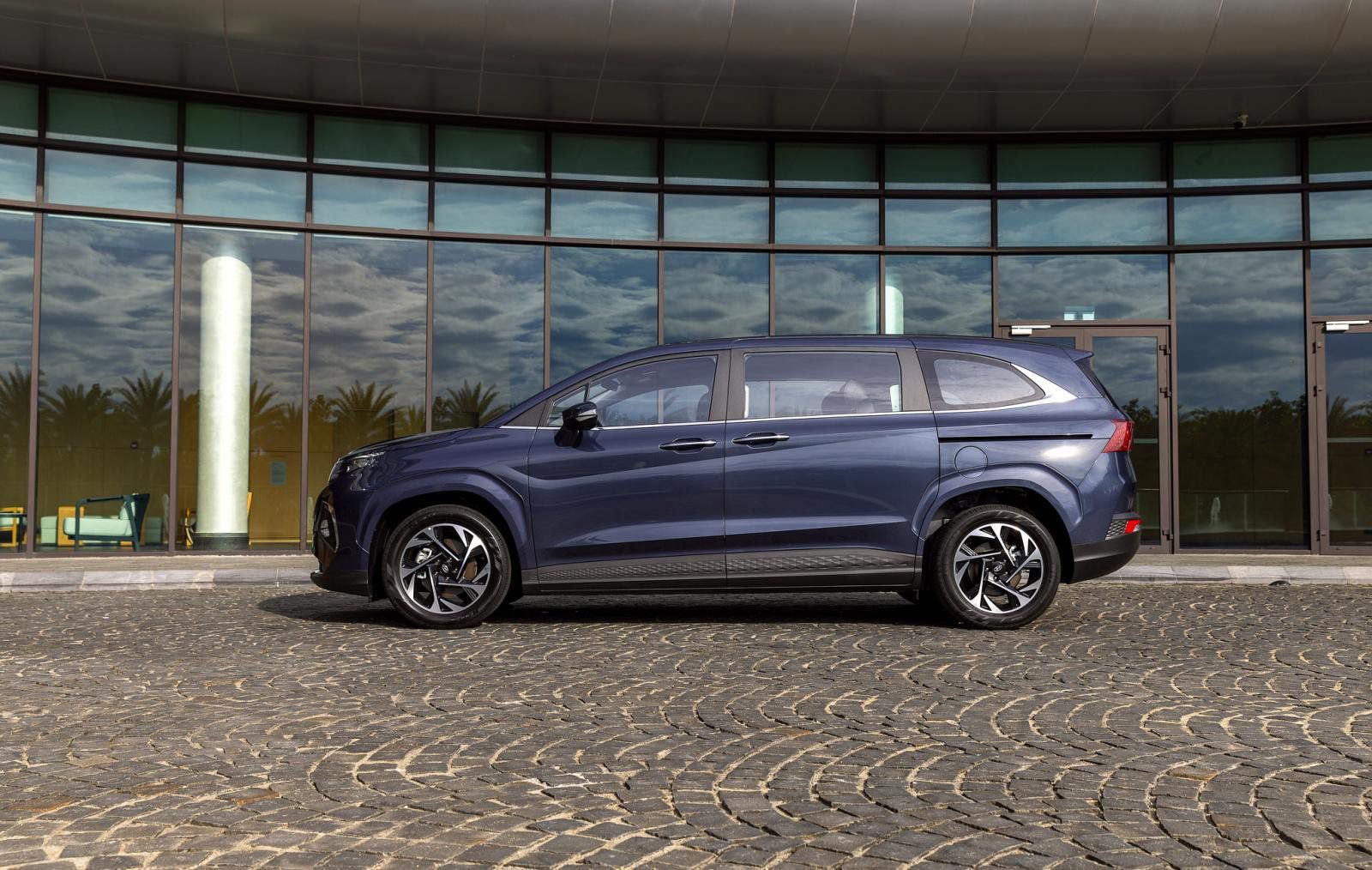Chất SUV khỏe khoắn trên mẫu MPV cỡ trung Hyundai Custin tiếp tục được thể hiện ở khu vực thân xe với những đường gân dập thẳng cứng cáp. Điểm nhấn nơi đây thuộc về bộ la-zăng 17 - 18 inch phay bóng, tạo hình thể thao, bắt mắt.