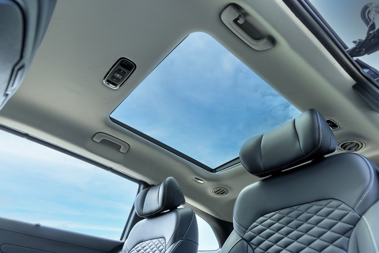 Phần cửa xe của Hyundai Custin thiết kế trượt tự động ở hai bên sườn thay vì kiểu mở cánh thông thường, kết hợp với đèn chiếu sáng bậc cửa giúp việc lên xuống xe dễ dàng, tiện lợi hơn. Gương chiếu hậu tích hợp đèn báo rẽ, camera 360 độ và cảnh báo điểm mù. Bộ phận này được gắn vào thân xe, kết hợp cột A mỏng, giúp giảm đáng kể điểm mù cho người lái.