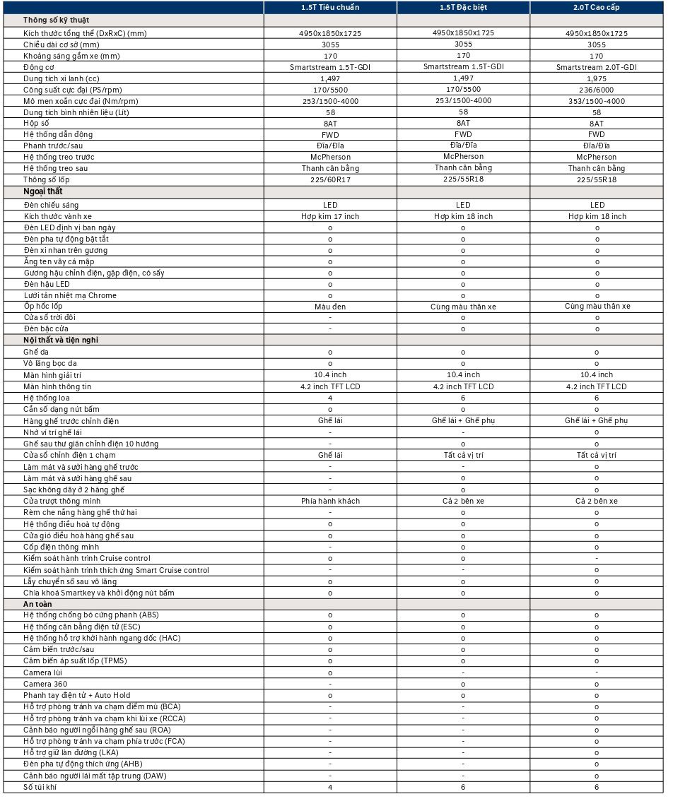 Custin 1.5T-GDi Đặc biệt : 915.000.000 đ
