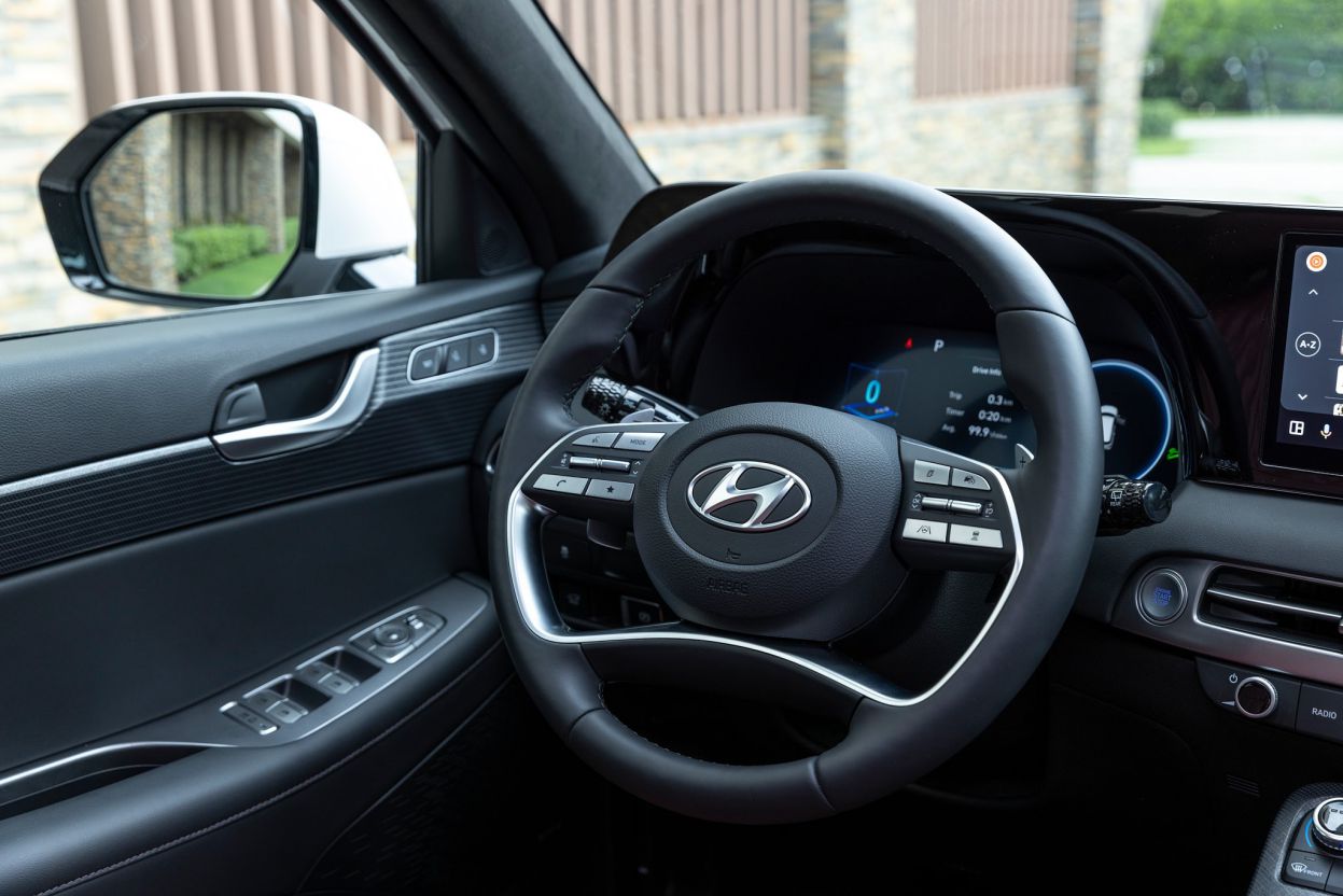 Xe Hyundai Palisade thế hệ mới sử dụng vô lăng đa chức năng 3 chấu mạ kim loại, bọc da cho cảm giác cầm nắm mềm mại. Ngay phía sau tay lái là bảng đồng hồ được tích hợp thêm màn hình kỹ thuật số với chất lượng hiển thị sắc nét.