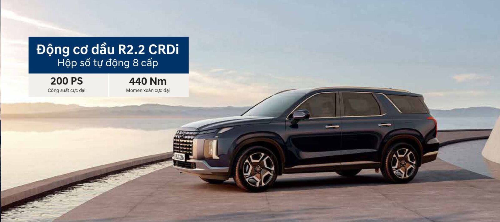 Theo như thông tin trên bảng báo giá từ Hyundai Thành Công, Palisade 2024 sẽ được nhập về dưới dạng phiên bản 2.2L. Phiên bản này sử dụng động cơ Diesel 2.2L 4 xy lanh thẳng hàng, cho ra công suất tối đa 197 mã lực, mô men xoắn cực đại 441 Nm.