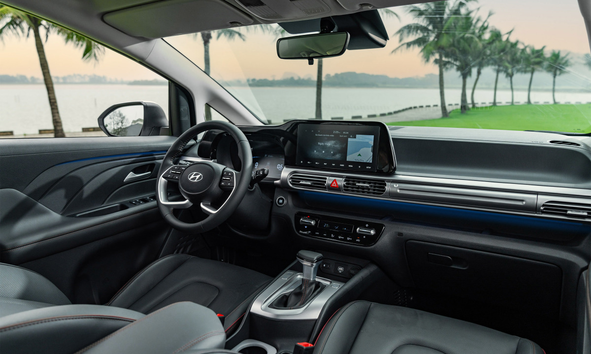 Chiếc xe mang cảm hứng thiết kế từ mẫu MPV đàn anh Staria với phần đầu xe nổi bật với thanh đèn LED trải dài toàn chiều rộng, trong khi ở phía dưới là cụm đèn pha full LED được thiết kế tách rời khá lớn chiếm gần hết cản trước.