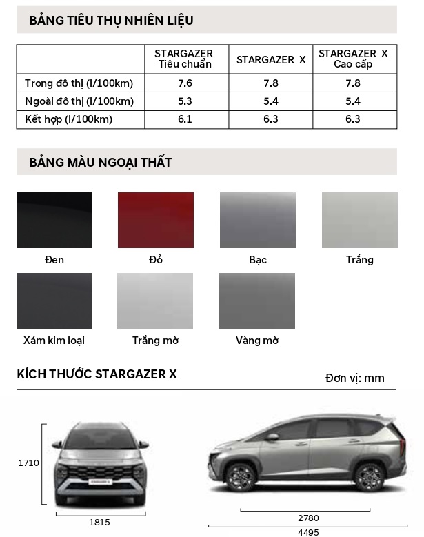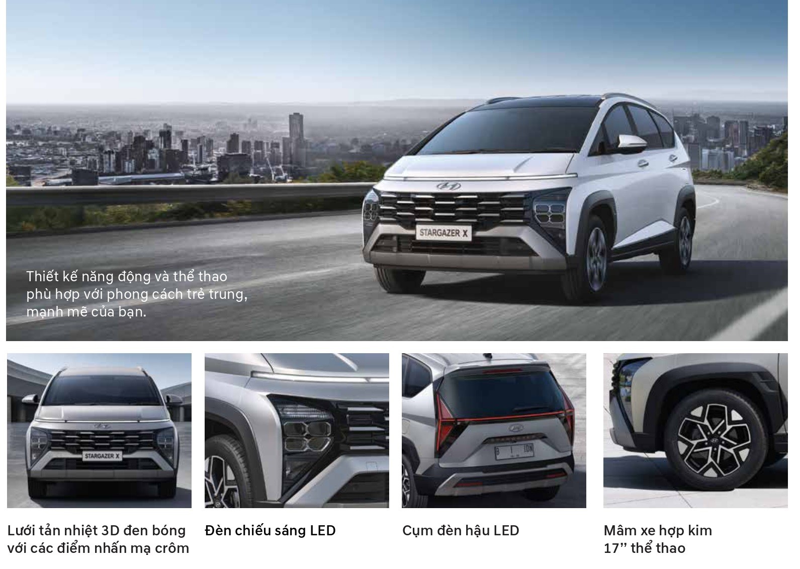 Hyundai Stargazer X là mẫu MPV được phát triển trên nền tảng chiếc Stargazer đã được giới thiệu tại Việt Nam vào năm 2022. Stargazer X được Hyundai Motor nghiên cứu và phát triển theo phong cách SUV mạnh mẽ, đa dụng hơn. Stargazer đời 2024 có giá khởi điểm 489 triệu đồng, rẻ nhất phân khúc, hai bản mới với hậu tố X mang phong cách SUV.